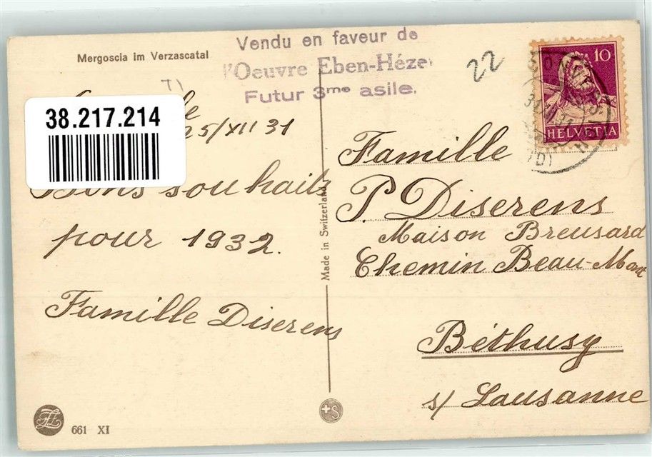6647 Mergoscia 1931 Lithographie / Künstlerkarte sign. Kunkler, H.