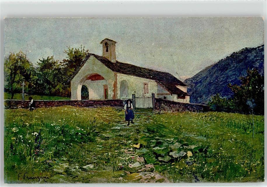 6673 Maggia Künstlerkarte sign. Franzoni Kirche