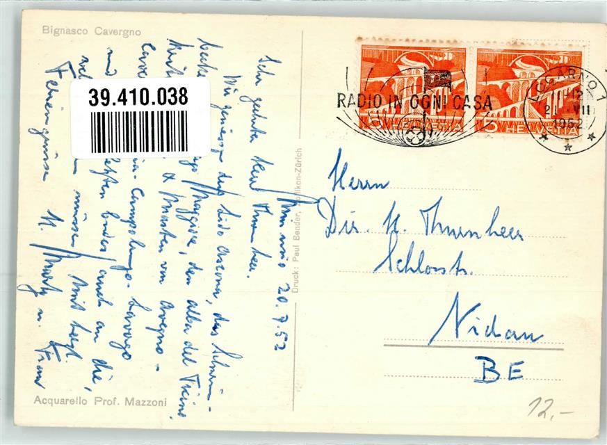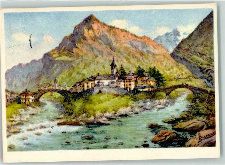 6676 Bignasco Künstlerkarte Cavergno sign. Prof Mazzoni
