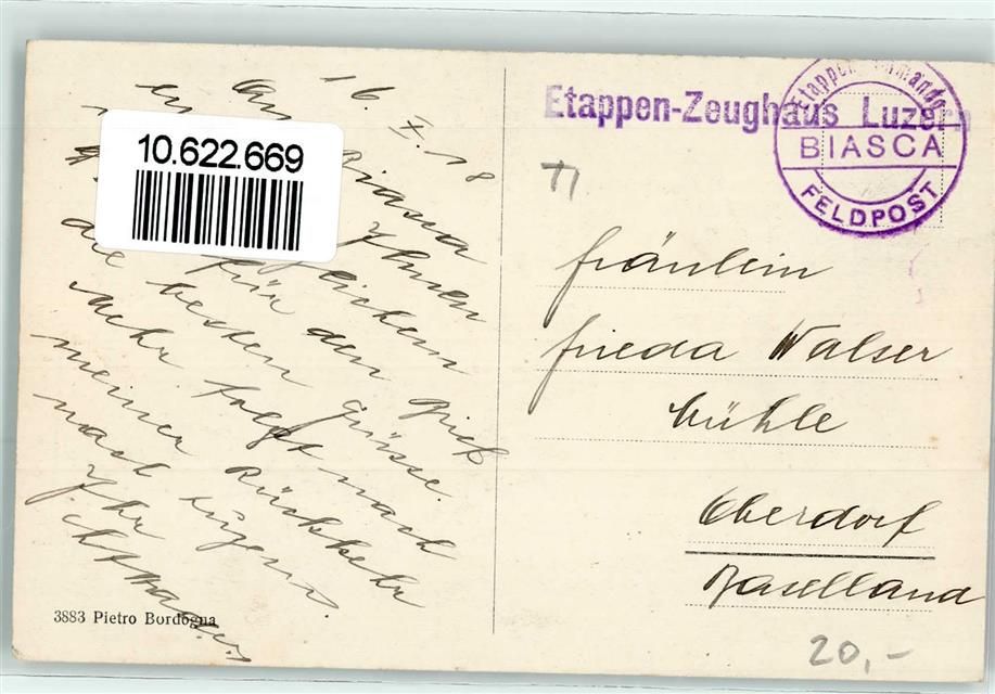 6710 Biasca - Cascata S Petronilla Feldpost Etappen Zeughaus