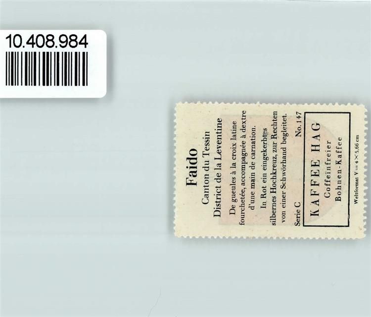 Faido, Vignette Wappen Kaffee Hag ca 1920-1940