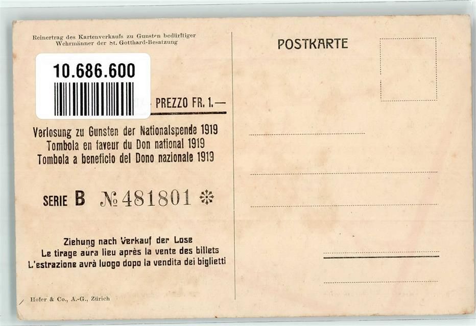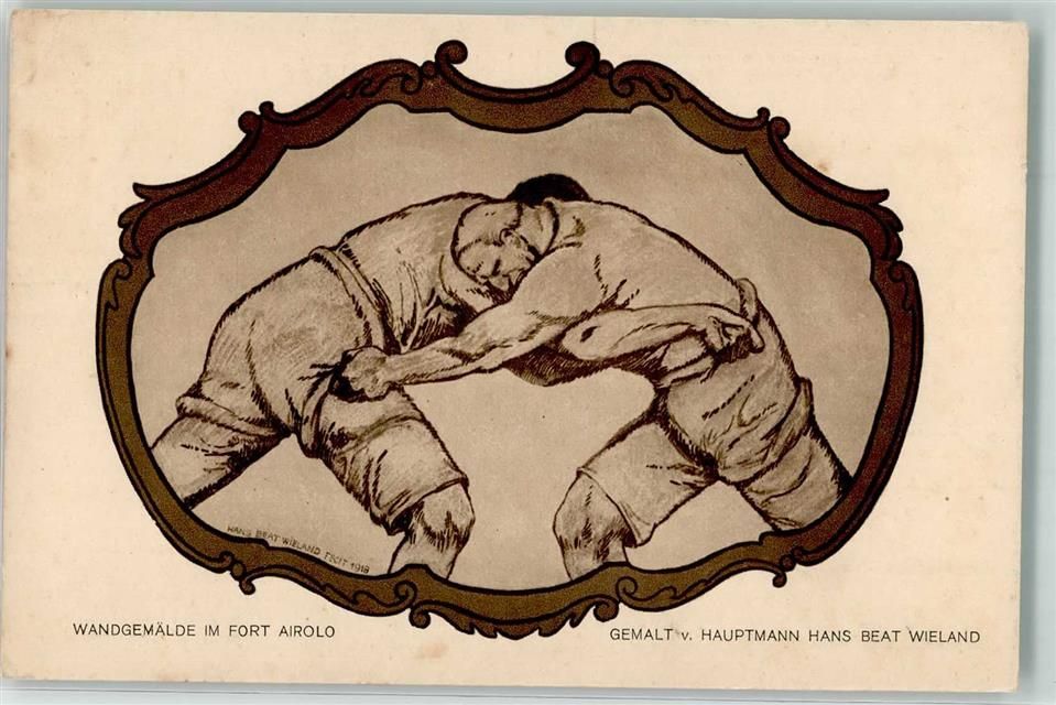 Airolo, Wandgemälde sign. Hauptmann H.B. Wieland Fort Airolo Verlosung Spende 1919
