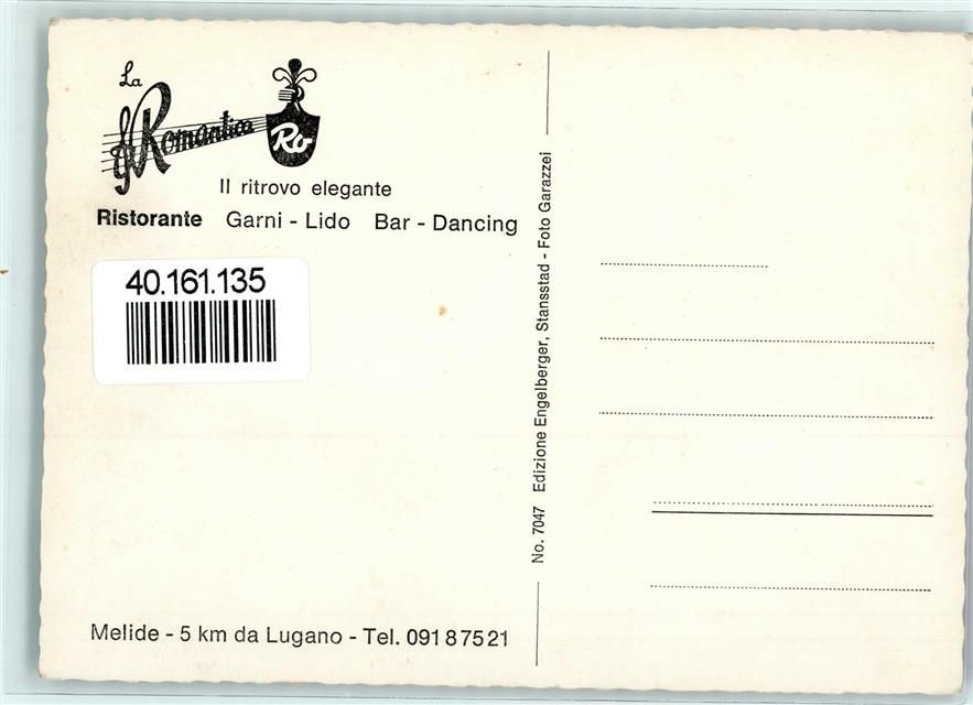 6815 Melide - Ristorante Garni-Lido Bar-Dancing La Romantica Papagei