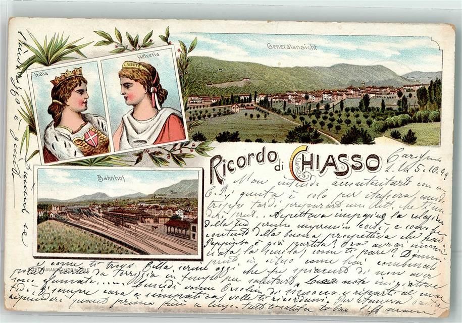 6830 Chiasso 1899 Lithographie Italia Helvetia Bahnhof
