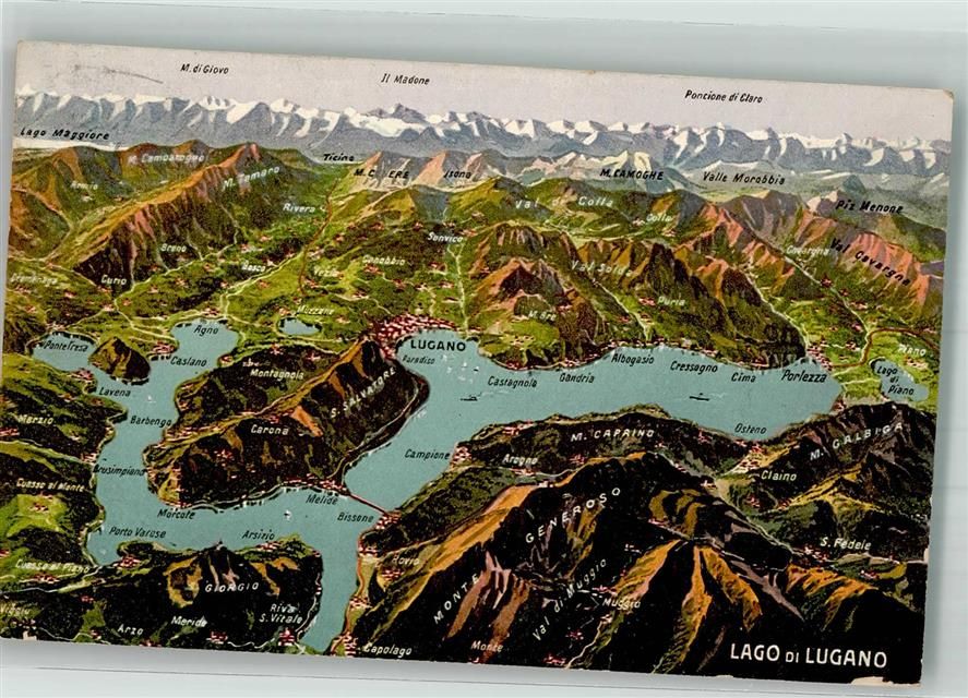 6900 Lugano 1910 Foto AK Vogelschau Lago di Lugona
