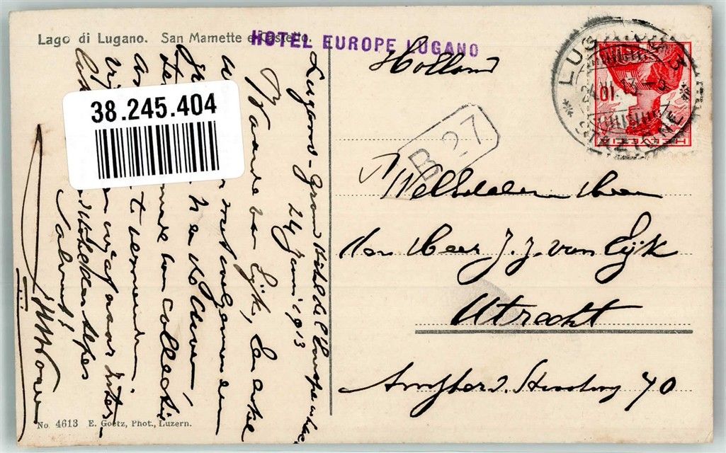6900 Lugano 1913 Foto AK Luganer See San Mamette Schloss Dampfschiff