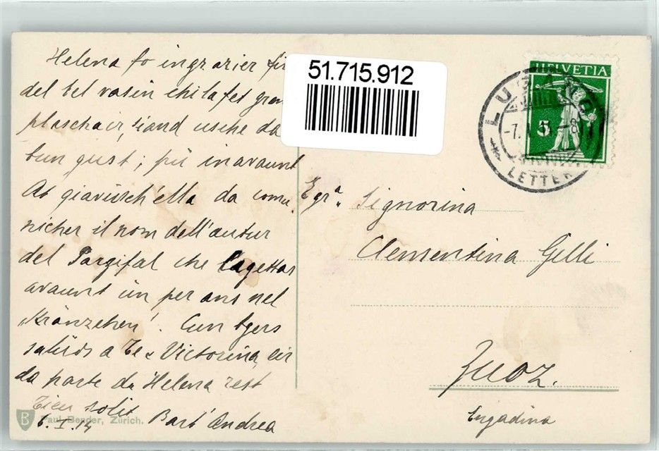 6900 Lugano 1914 - Blick mit Col Monte San Salvatore Lago di Lugano