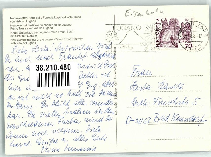 6900 Lugano Foto AK Eisenbahn Gelenkzug Lugano-Ponte Tresa Bahn