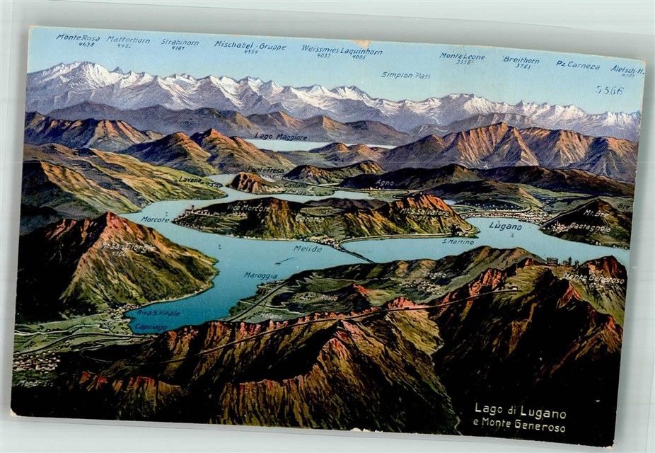 6900 Lugano Foto AK Vogelschau Lago di Lugano