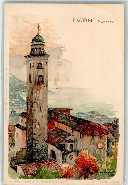 6900 Lugano Lithographie St. Lorenzo sign. Wielandt