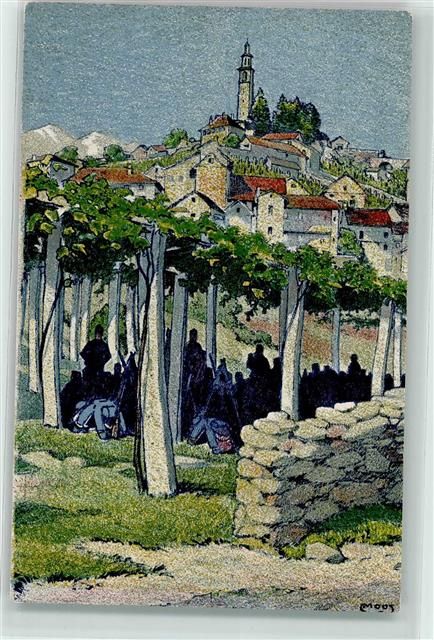 6914 Carona Künstlerkarte Kirche Soldaten sign Moos Pro Juventute