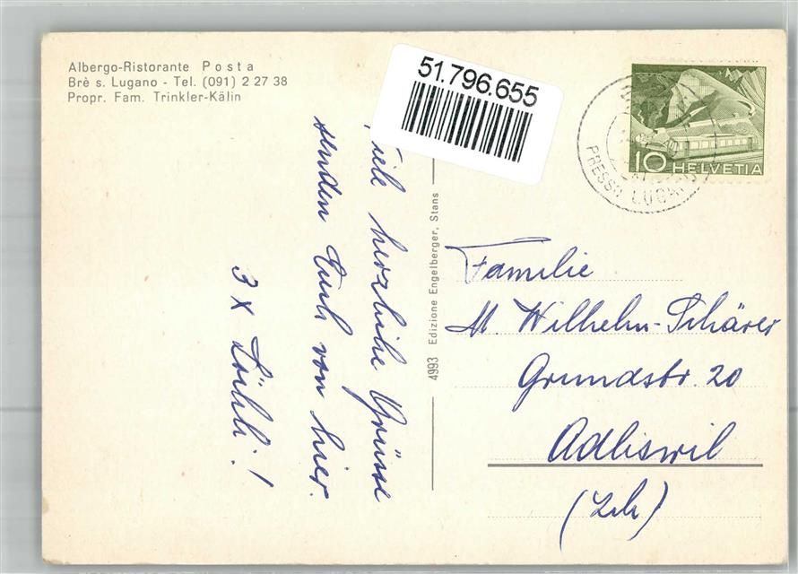 6979 Brè sopra Lugano - Albergo Gasthaus Posta