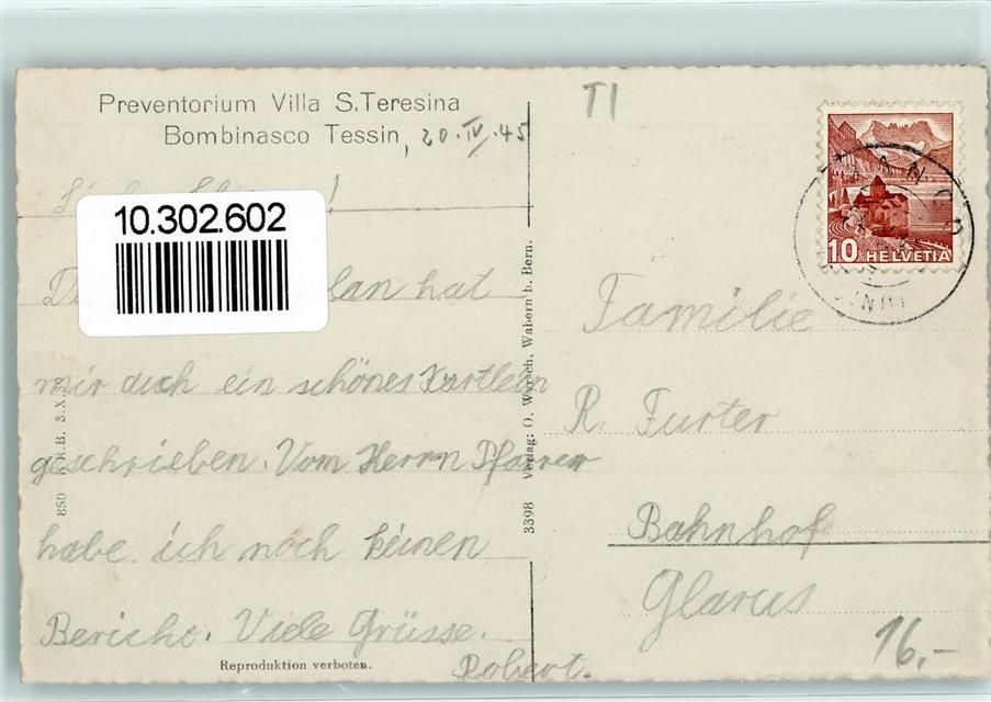 6981 Bombinasco 1945 - Preventorium Villa S. Teresina Flugaufnahme