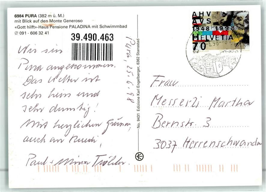 6984 Pura - Monte Generoso Gott hilft Haus Pension Paladina Schwimmbad