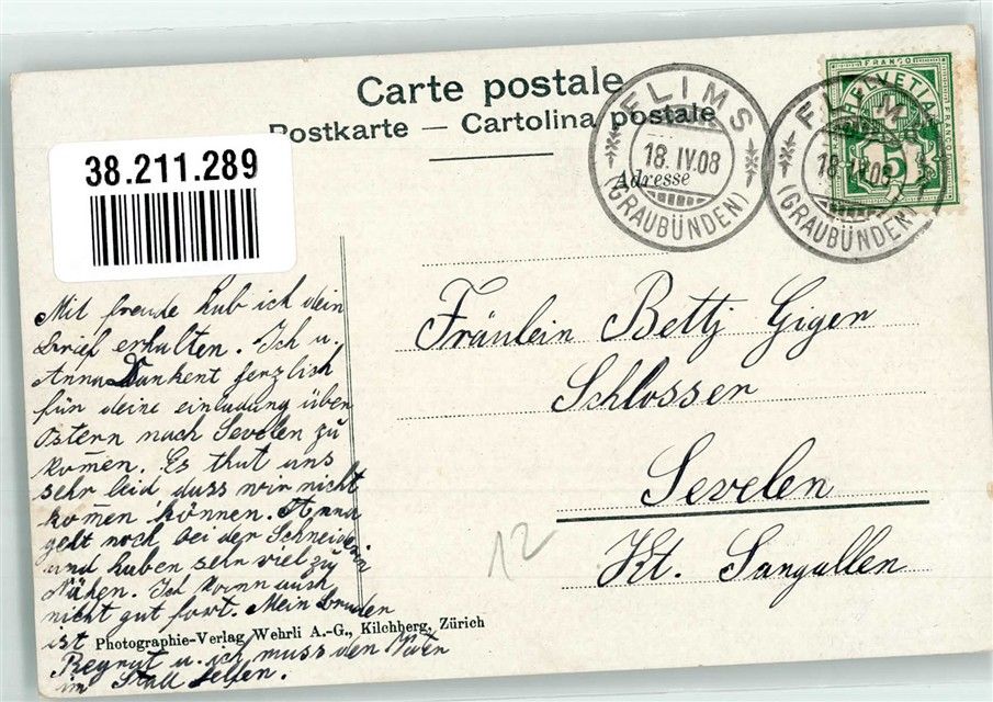 7017 Flims Dorf 1908 Foto AK Waldhäuser