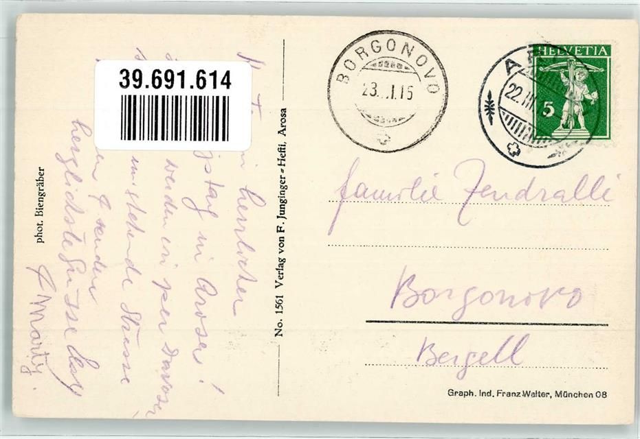 7050 Arosa 1915 Foto AK Foto Biengräber Winter Rütiweg