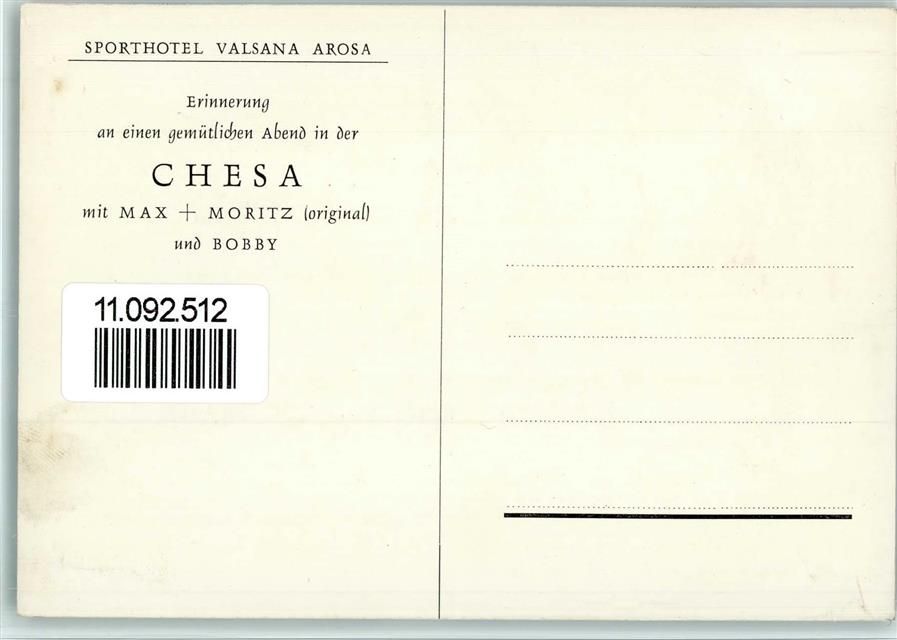 7050 Arosa Foto AK Sporthotel Valsana Chesa mit Max und Moritz und Bobby Ziehharmonika