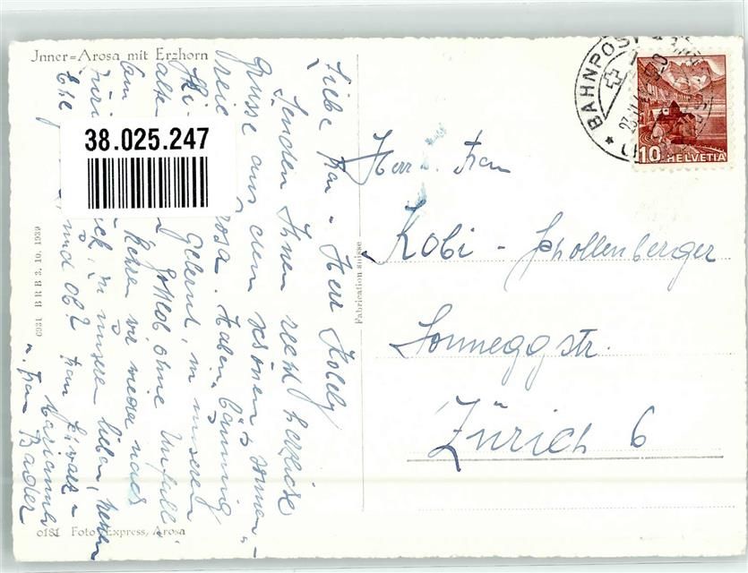 7050 Innerarosa Arosa Foto AK Winter Bahnpost Zug 520