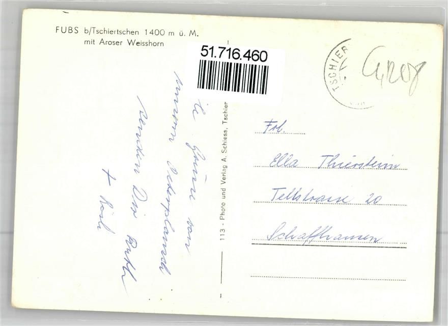 7064 Tschiertschen Foto AK Aroser Weißhorn Fubs Winter