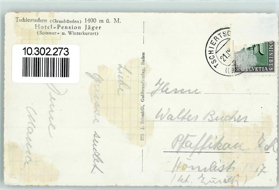 7064 Tschiertschen Gebrauchsspuren Hotel Pension Jäger