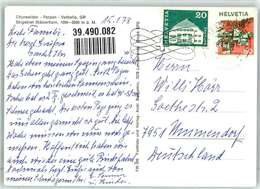 7075 Churwalden - Winter Skifahrer Bügellift Stätzerhorn Parpan Valbella