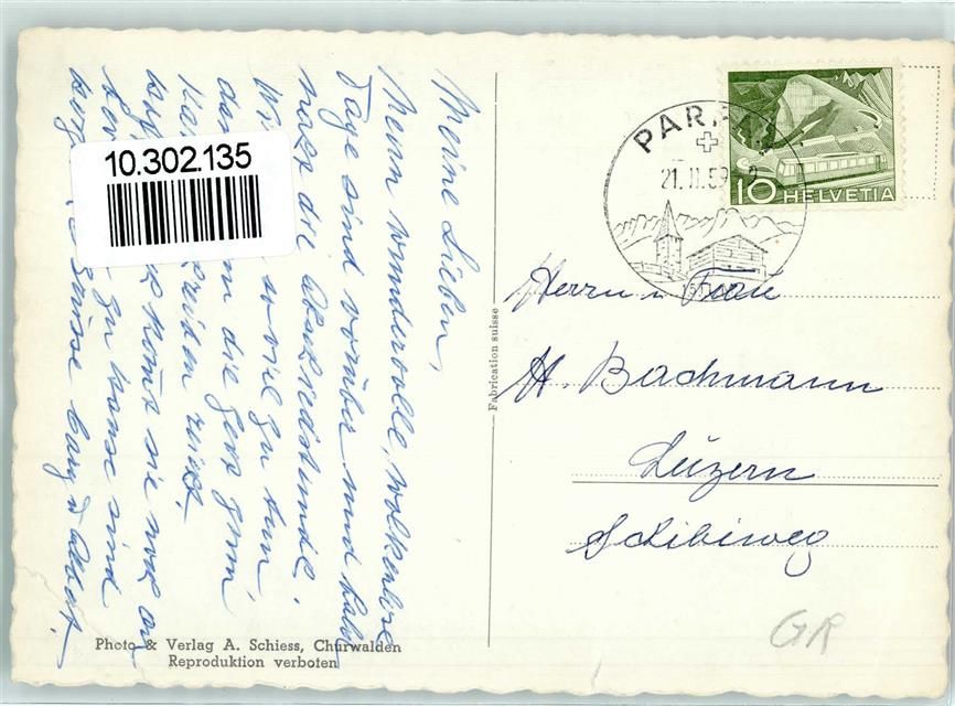 7076 Parpan 1959 Gebrauchsspuren Hotel Alpina Winter
