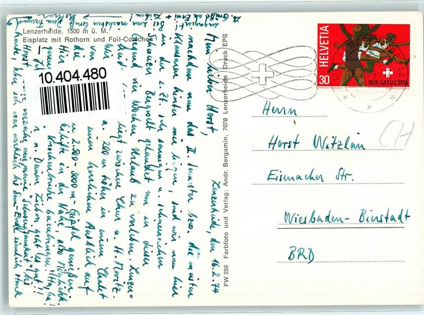 7078 Lenzerheide/Lai - Eisplatz mit Rothorn und Foil-Cotschen Schlittschuhläufer