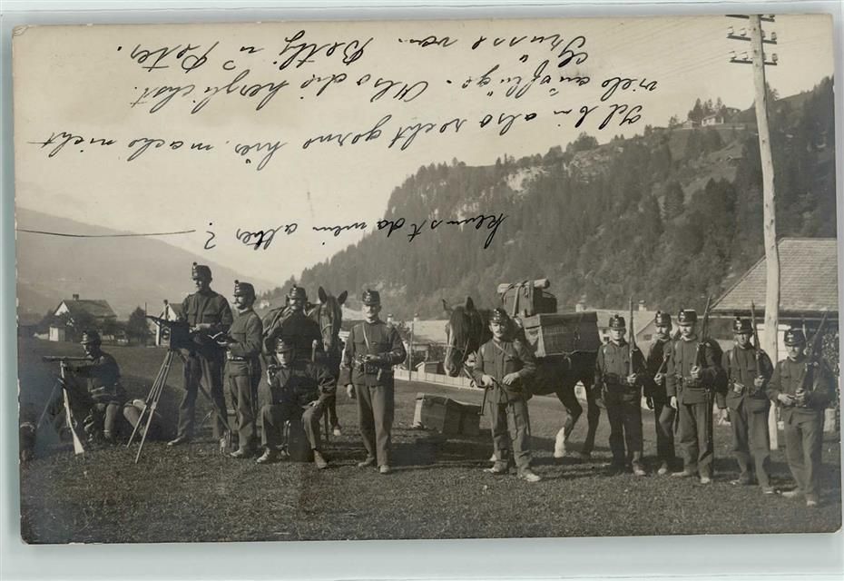 Ilanz, Soldaten Packpferd Gewehre Ort lt. Stempel