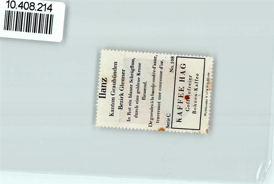 7130 Ilanz - Vignette Wappen Kaffee Hag ca 1920-1940 Krone