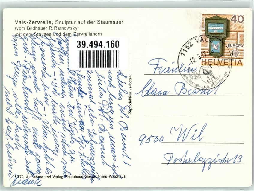 7132 Vals - Skulptur auf der Staumauer Bildhauer R. Ratnowsky Stausee Zervreilahorn