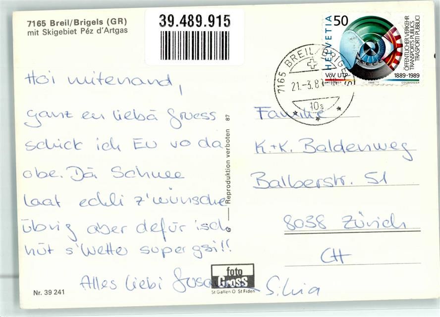7165 Breil Brigels - Winter Skifahrer Bügellift Sessellift Péz d´Argas