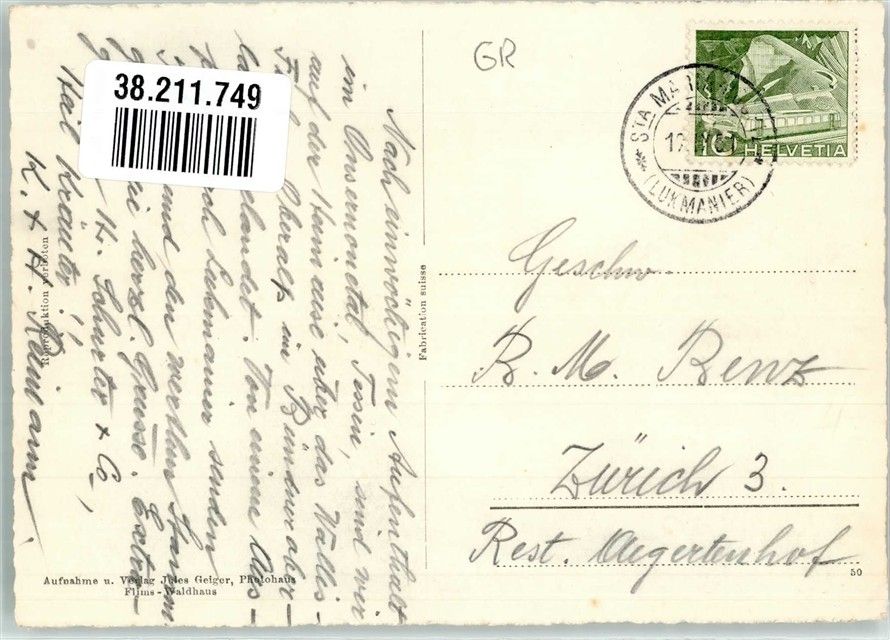 7184 Medel Lucmagn 1951 Foto AK Hospiz Sta. Maria Luckmanierpass
