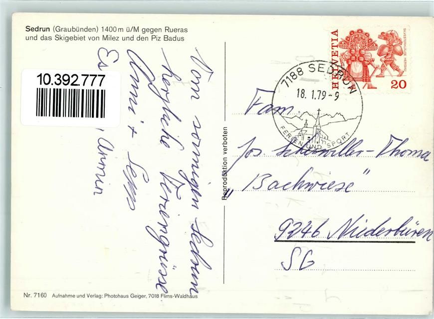 7188 Sedrun - gegen Rueras und das Skigebiet von Milez und den Piz Badus