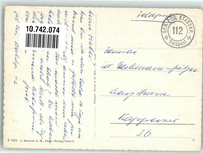 Zizers, Fliegeraufnahme Feldpost Geb.Füs.Stabskp. 112