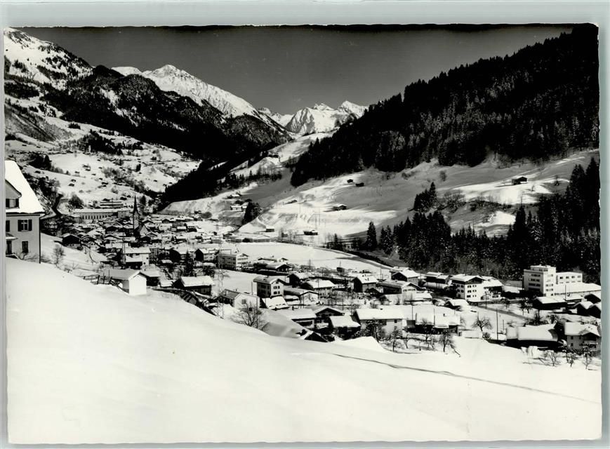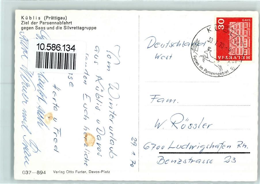 7240 Küblis Foto AK Schnee Winter Kirche Parsennabfahrt Saas Silvrettagruppe
