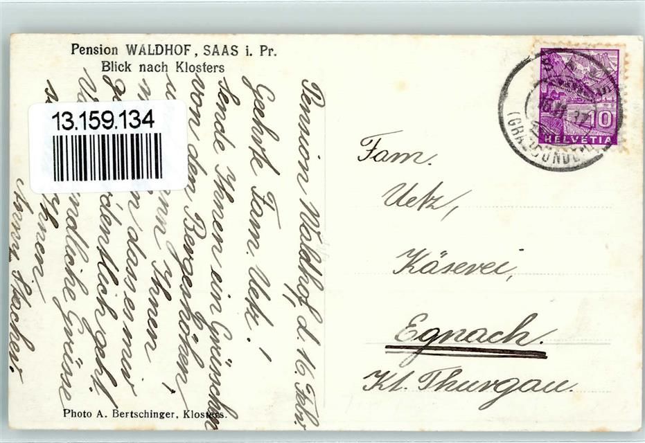 7247 Saas im Prättigau Foto AK Pension Waldhof Blick nach Klosters Winter