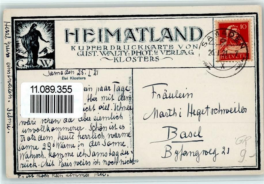 7250 Klosters 1921 Kupfertiefdruck Verschneiter Wald