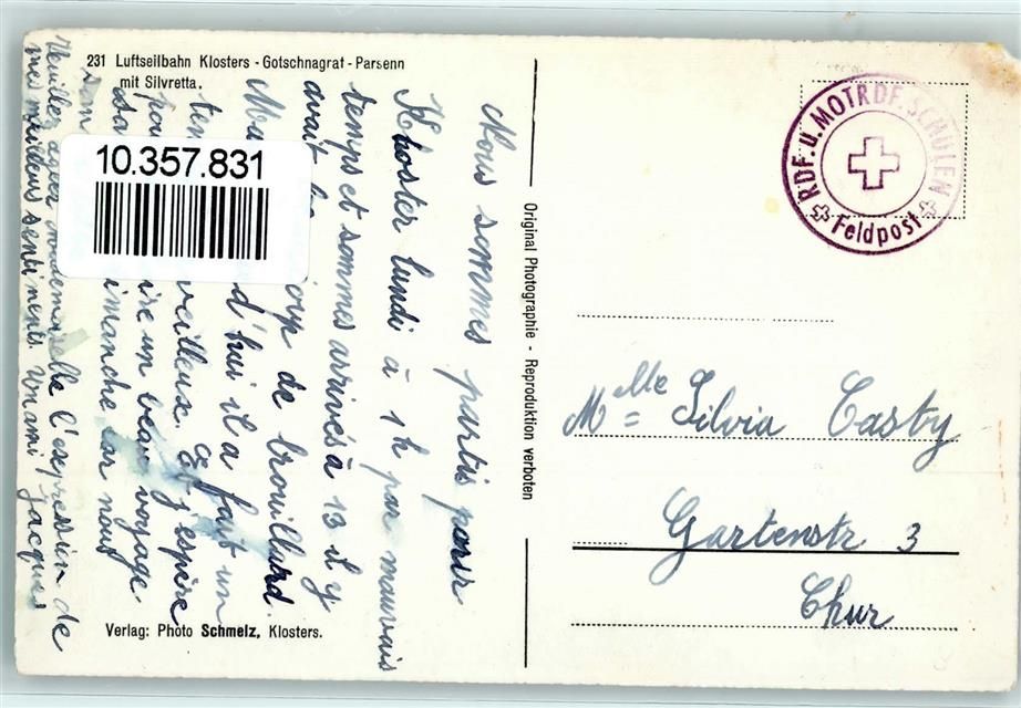 7250 Klosters Gebrauchsspuren Seilbahn Feldpost Schweiz