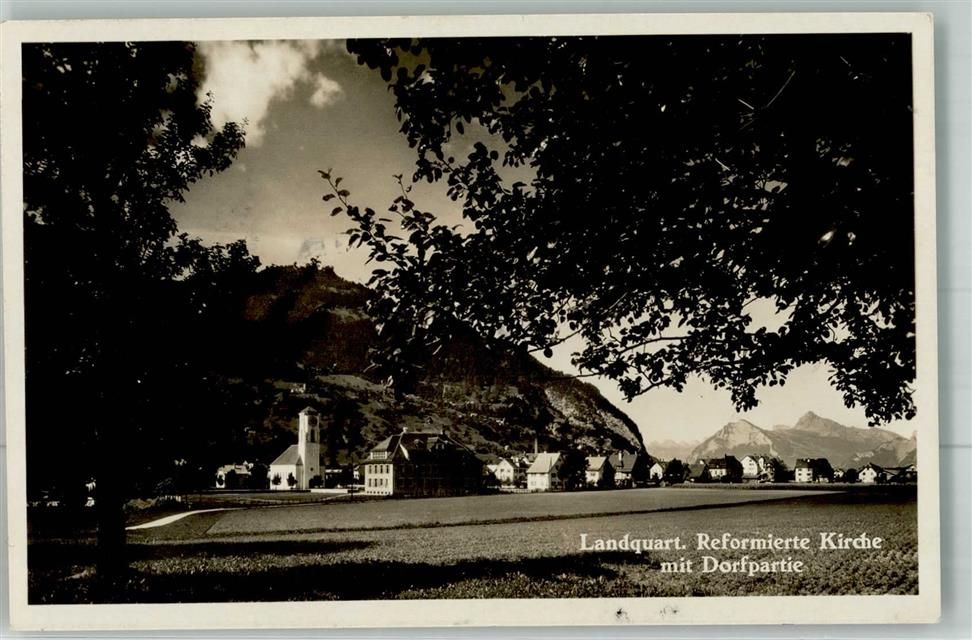 7302 Landquart 1935 Foto AK Ref. Kirche Bahnpost Räth.Bahn Zug 17