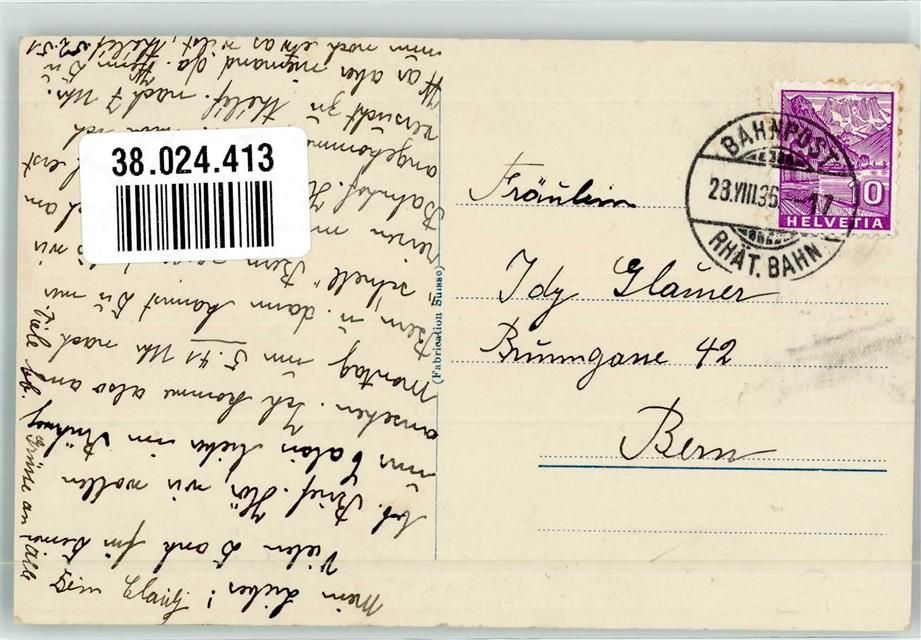 Landquart, Ref. Kirche Bahnpost Räth.Bahn Zug 17