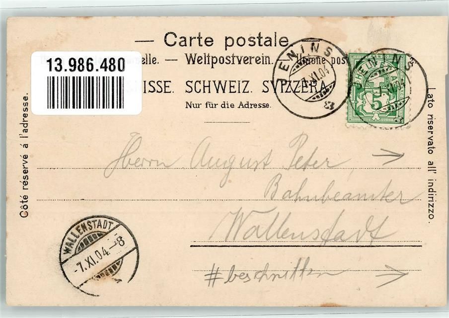 7307 Jenins 1904 Gebrauchsspuren beschnitten Wein