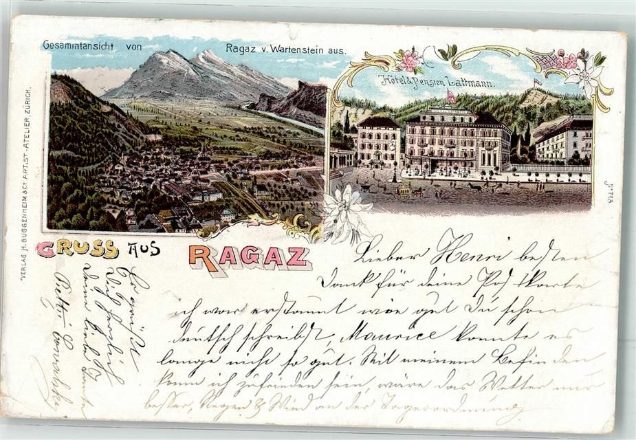 7310 Bad Ragaz 1899 Lithographie Hotel Pension Lattmann