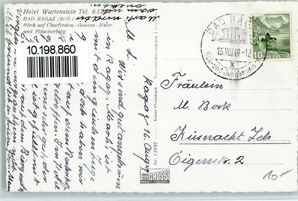7310 Bad Ragaz 1949 - Hotel Wartenstein Blick auf Churfirsten Gonzen Alvier und Fläscherberg