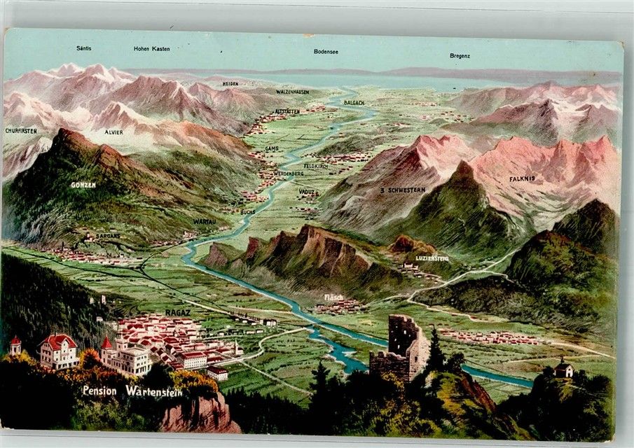 Bad Ragaz, Vogelschau Rheintal-Bodensee