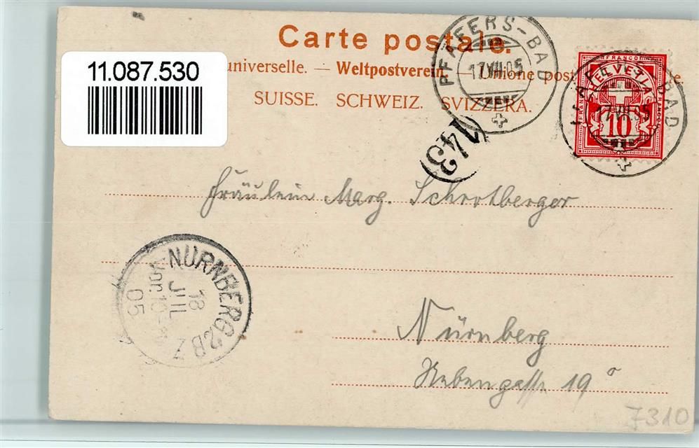 7312 Pfäfers 1905 - Grus aus Bad Pfäfers bei Ragaz Mitte Taminaschlucht bei Bad Pfäfers