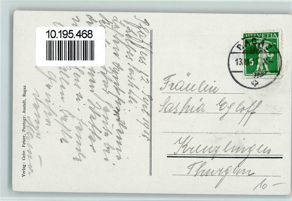 7312 Pfäfers 1915 - Ragaz-Pfäfers Hotel Bad Pfäfers in der Taminaschlucht