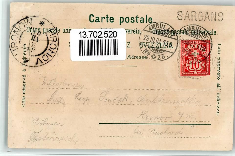 7320 Sargans 1901 BOAKC Lithographie Hotel Thoma Hauptstraße Verlag Künzli