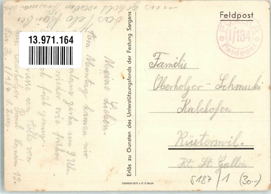 Sargans, Feldpost Fus.Kp. I/134 Festung Uniform