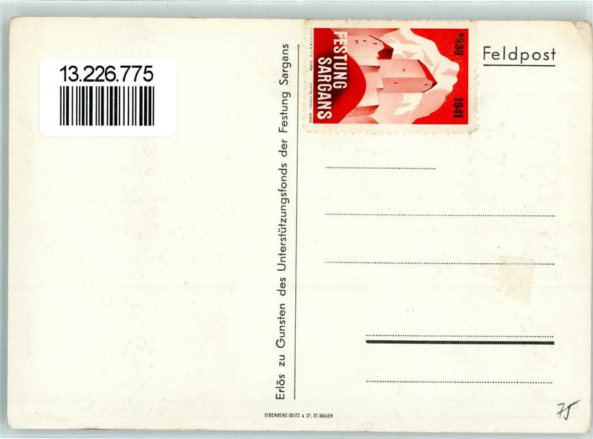7320 Sargans Gebrauchsspuren Festung Soldat Gewehr sign Künstlerkarte