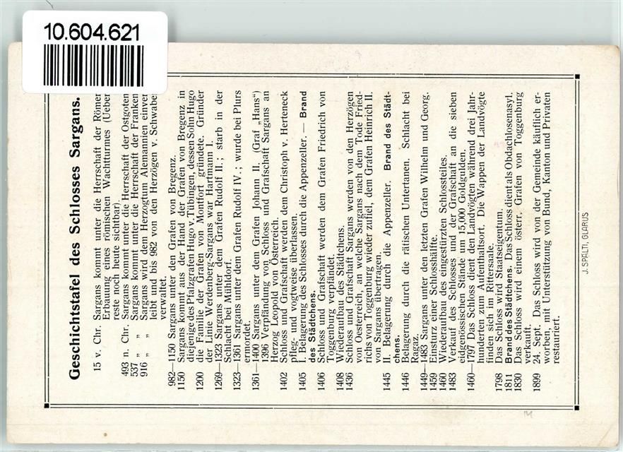 7320 Sargans KEINE AK Schloss Waffensammlung Geschichtstafel